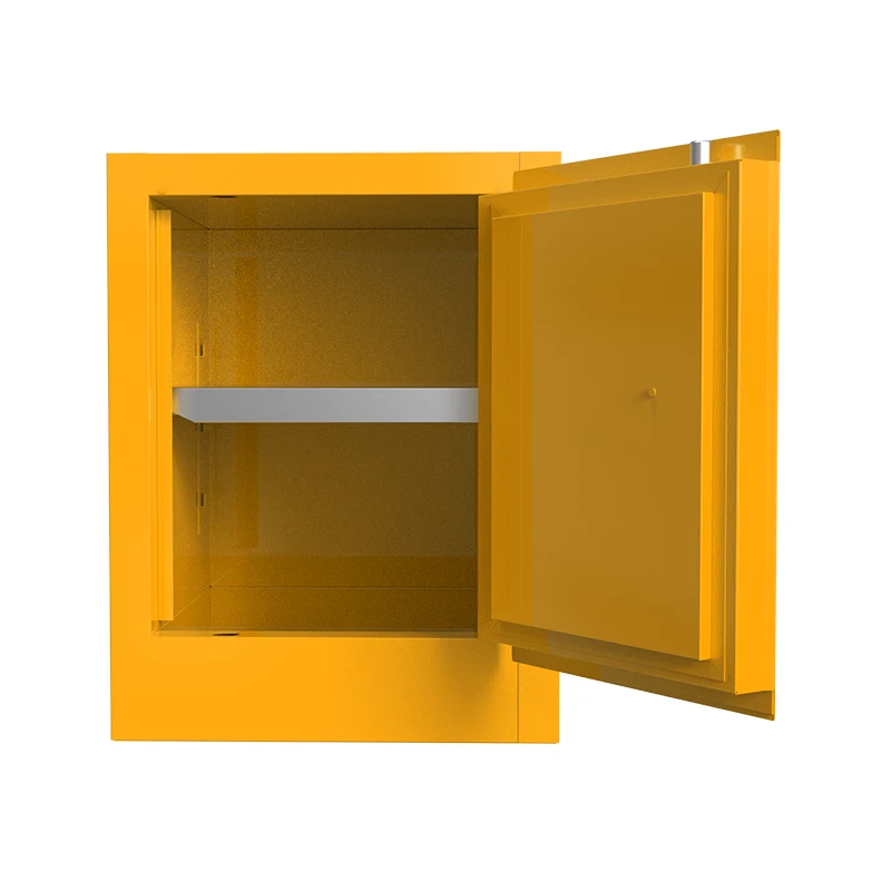 Tuotteen nimi: Syttyvä säilytyskaappi Tuotteen malli: GS004 Ulkomitat: K560×L430×S430mm Sisämitat: K460×L350×S330mm Hyllyn mitat: L348×S330×K25mm Tilavuus: 4/15 (gallonaa/litraa) Paino: 25kg Oven avaustapa: Manuaalinen/Automaattinen Hyllyt: Yksi säädettävä hylly Ovityyppi: Yksiovinen Lukituslaite: Kaksoislukko Väri: Keltainen (epoksihartsi spray - maalattu) Huomautuksia: 500 ml:n reagenssipullojen mukaan voidaan sijoittaa 2 hyllyä, joista jokaisella 9 pulloa |